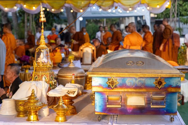 และในวันที่ 7 ม.ค.67 ที่วัดโนนแกด อ.เมือง จ.ศรีสะเกษ มีพิธีเก็บอัฐิธาตุ “หลวงปู่เกลี้ยง เตชะธัมโม” บนถาดรองอัฐิธาตุพระเถราจารย์ลำดับที่ 11 ซึ่งมี นายขจรศักดิ์ จิรัตน์จรัสธร กรรมการผู้จัดการ บริษัท ฐาปนินทร์ จำกัด พร้อมด้วยญาติติธรรมร่วมจัดถวายถาดรองอัฐิธาตุลำดับที่ 11 ในพิธีดังกล่าวนี้ด้วย