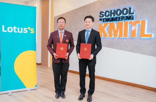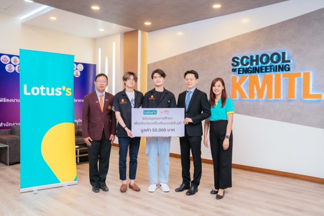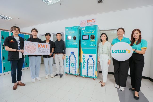โลตัส ร่วมกับ สถาบันเทคโนโลยีพระจอมเกล้าเจ้าคุณทหารลาดกระบัง (สจล.) ลงนามบันทึกข้อตกลงความร่วมมือโครงการปรับปรุงเครื่องรับขวดพลาสติก (Reverse Vending Machine – RVM) เพื่อนำกลับเข้าสู่กระบวนการรีไซเคิล พร้อมมอบทุนการศึกษา จำนวน 50,000 บาท สนับสนุนการศึกษาเรียนรู้ของนักศึกษา คณะวิศวกรรมศาสตร์ และพัฒนาระบบซอฟต์แวร์ เพื่อเป็นต้นแบบในการต่อยอดเครื่องรับขวดพลาสติกให้อัจฉริยะและ smart ยิ่งขึ้น สอดคล้องนโยบายด้านความยั่งยืนของโลตัส ที่มุ่งสร้างคุณค่าและประโยชน์ทางเศรษฐกิจให้แก่สังคมและผู้มีส่วนได้ส่วนเสีย ผ่านการสนับสนุนพัฒนาทักษะนวัตกรรมให้เยาวชนไทย พร้อมส่งเสริมการรีไซเคิลขยะตามแนวทางเศรษฐกิจหมุนเวียน