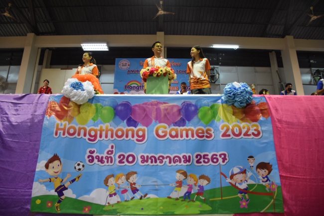 ซึ่งประธานในพิธีดร.ภาณุศักร หงษ์ทอง ผู้อำนวยการโรงเรียนอนุบาลหงษ์ทองได้กล่าวให้โอวาทแก่นักเรียนและทำพิธีเปิดกิจกรรม Hongthong Game 2023 โดยใช้สโลแกนรู้แพ้ รู้ชนะ รู้อภัย เป็นที่ตั้งและเล่นกีฬาอย่างสนุกสนาน