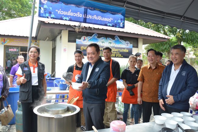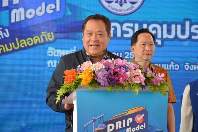 “กรมคุมประพฤติ ได้มุ่งเน้นในการพัฒนาศักยภาพผู้ที่อยู่ในความดูแล โดยเฉพาะจากคดียาเสพติด ในช่วงที่มีงบประมาณเพียงน้อยนิด วันนี้ท่านอธิบดีกรมคุมประพฤติ จึงได้เชิญ ผู้ว่าราชการจังหวัดปทุมธานี และ นายก อบจ. ปทุมธานี และหน่วยงานในพื้นที่มาเข้าร่วม แม้กรมคุมประพฤติจะประสบวิกฤติด้านงบประมาณ ในการที่จะสร้างคนให้มีพลัง ให้มีคุณภาพทางสังคม การสร้างบ้านนั้นย่อมง่ายกว่าการซ่อมบ้าน เปรียบได้กับการบูรณะบุคคลที่ก้าวพลาด ผู้เสพ และผู้ติดยาเสพติด โครงการ “DRIP Model” จึงถือว่าเป็นนวัตกรรม องค์ความรู้ ที่เราโหยหาเพื่อนำมาแก้ปัญหายาเสพติด มีการพัฒนาเป็นค่ายปรับเปลี่ยนพฤติกรรมระยะยาว 60 วัน หรือเรียกว่า ค่ายสานพลังใจ เพื่อฟื้นฟูสภาพร่างกายของผู้เสพยาเสพติดให้แข็งแรง มีภูมิคุ้มกันจิตใจที่เข้มแข็ง พัฒนาความคิด จิตวิญญาณ ปรับเปลี่ยนพฤติกรรมไปในทางที่ดีขึ้น ถือว่าโครงการในวันนี้เป็นการบูรณาการทุกภาคส่วน ในการดูแล แก้ไขฟื้นฟู ช่วยเหลือ สงเคราะห์ อีกทั้งส่งเสริม สนับสนุนด้านอาชีพ เพื่อพัฒนาศักยภาพผู้เสพยาเสพติด และแก้ปัญหาวิกฤติของประเทศคือวิกฤติด้านยาเสพติดที่เกิดขึ้นในขณะนี้” พ.ต.อ.ทวี สอดส่อง รมว.ยุติธรรม กล่าว