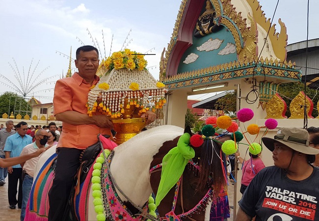 งานบวชลูกชาย สท.เมืองนนท์ สุดอลังการยิ่งใหญ่ต้นปี! สจ.ลุงซานต้าเมืองนนท์ ขี่ม้านำนาคเข้าวัด จัดเต็มดนตรี และโต๊ะจีน ขนไข่ไก่กว่า 2 หมื่นฟอง พร้อมข้าวสารกว่า 1 พันถุง แจกนางรำ และผู้ร่วมงาน