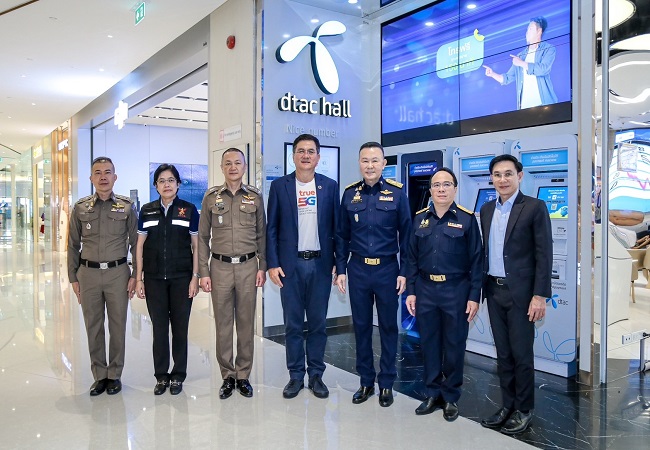 สำนักงานคณะกรรมการกิจการกระจายเสียง กิจการโทรทัศน์ และกิจการโทรคมนาคมแห่งชาติ โดย พล.ต.อ ณัฐธร เพราะสุนทร (ที่ 4 จากขวา) กรรมการด้านกฎหมาย และประธานอนุกรรมการบูรณาการบังคับใช้กฎหมายความผิดทางเทคโนโลยี กสทช. และ นายสุทธิศักดิ์ ตันตะโยธิน (ที่ 3 จากขวา) รองเลขาธิการ กสทช. พร้อมด้วย พล.ต.ท.ธัชชัย ปิตะนีละบุตร ผู้ช่วยผู้บัญชาการตำรวจแห่งชาติ ดูแลงานด้านอาชญากรรมเทคโนโลยี / อนุกรรมการบูรณาการฯ สำนักงานตำรวจแห่งชาติ (ที่ 4 จากซ้าย) เดินทางมาตรวจเยี่ยมทรูช็อป เพื่อติดตามความคืบหน้าการลงทะเบียนเลขหมายโทรศัพท์เคลื่อนที่และการยืนยันตัวตนของผู้ใช้บริการที่ถือครองเลขหมายเกินกว่า 6 เลขหมายขึ้นไป เพื่อป้องกันมิจฉาชีพนำไปใช้ในก่ออาชญากรรมออนไลน์ โดยมี นายจักรกฤษณ์ อุไรรัตน์ (ที่ 5 จากซ้าย) หัวหน้าคณะผู้บริหารด้านกิจการองค์กร บมจ. ทรู คอร์ปอเรชั่น ให้การต้อนรับ พร้อมสาธิตวิธีการยืนยันตัวตน และนำชมเทคโนโลยีที่ได้พัฒนาและวางระบบยืนยันตัวตนที่มีความปลอดภัยขั้นสูง เพื่ออำนวยความสะดวกจากนโยบายดังกล่าวให้กับลูกค้าทรูมูฟ เอช และดีแทค ทั้งแบบรายเดือนและแบบเติมเงินอย่างเต็มที่ ณ ทรู แบรนดิ้ง ช็อป ศูนย์การค้าสยามพารากอน