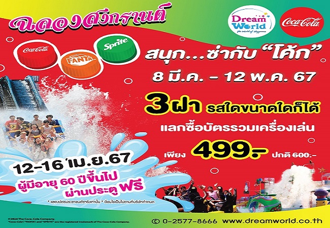 สวนสนุกดรีมเวิลด์ ร่วมฉลองสงกรานต์สืบสานประเพณีไทย ชวนทุกครอบครัวมาสาดความสุข เปียก เย็น เล่นสนุก 12 – 16 เมษายน67 พิเศษผู้มีอายุ 60 ปีขึ้นไป ผ่านประตูฟรี