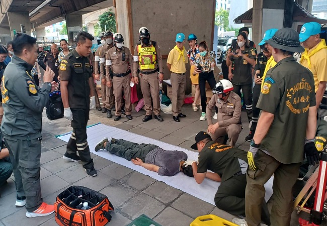 ซึ่งกิจกรรมในครั้งนี้ถือเป็นการร่วมมือกันรณรงค์เฝ้าระวังภัยให้แก่พี่น้องประชาชนที่เดินทางกลับภูมิลำเนาในช่วงเทศกาลสงกรานต์ให้ปลอดภัยจากอุบัติเหตุบนท้องถนน โดยได้รับเกียรติจาก นายแพทย์อภิชัย โตวณะบุตร ผู้ช่วยผู้อำนวยการแพทย์โรงพยาบาลพญาไท 3 ร่วมด้วย พ.ต.อ.ไพโรจน์ นาเมืองรักษ์ ผกก.สน.ภาษีเจริญ ให้เกียรติกล่าวเปิดงานในครั้งนี้ ณ บริเวณแยกเพชรเกษม-ราชพฤกษ์ สถานีรถไฟฟ้า BTS บางหว้า