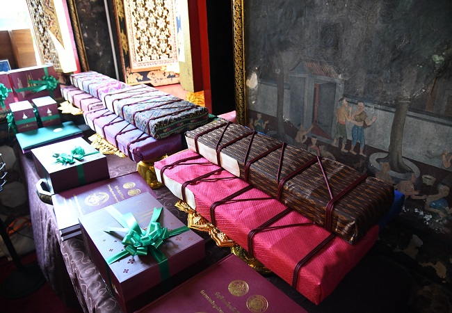 4. คัมภีร์ใบลานสมัยรัตนโกสินทร์ รัชกาลที่ 4 และรัชกาลที่ 5 ได้รับการอนุรักษ์จัดเก็บอย่างเป็นระบบตามหลักวิชาการ โดยใช้ไม้ประกับประกบด้านข้างของคัมภีร์เพื่อเป็นการรักษาทรงไม่ให้โค้งงอ ส่วนกล่องบรรจุคัมภีร์ที่มีมาแต่เดิม จำนวนทั้งสิ้น 87 กล่อง ถือเป็นโบราณวัตถุที่มีความสำคัญเพราะสร้างโดยประณีตศิลป์ เพื่อเก็บรักษาคัมภีร์ มีข้อความจารึกฝังที่สันกล่องระบุปี จ.ศ.1247 (พ.ศ.2428) กล่องประณีตศิลป์นี้จึงมีอายุอย่างน้อย 139 ปี จึงถ่ายโอนภารกิจนี้ให้กับสำนักช่างสิบหมู่ดำเนินการอนุรักษ์ซ่อมแซมต่อไป