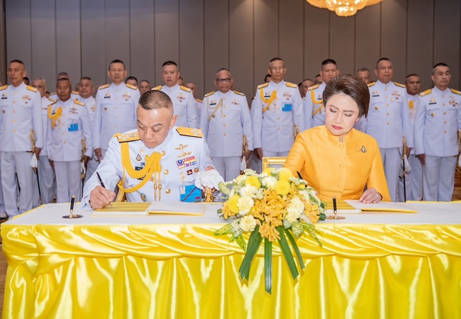 วันนี้ (3 พ.ค.67) เวลา 09.00 น. พล.ร.อ.อะดุง พันธุ์เอี่ยม ผู้บัญชาการทหารเรือ (ผบ.ทร.) พร้อมด้วย นางกีรตา พันธุ์เอี่ยม นายกสมาคมภริยาทหารเรือ นำนายทหารชั้นผู้ใหญ่ของกองทัพเรือ ตลอดจนหัวหน้าหน่วยขึ้นตรงกองทัพเรือพร้อมคู่สมรส กล่าวถวายพระพรชัยมงคล และร่วมลงนามถวายพระพรชัยมงคล เนื่องในวันฉัตรมงคล 4 พฤษภาคม 2567 เพื่อแสดงออกถึงความจงรักภักดี และน้อมรำลึกถึงพระราชพิธีบรมราชาภิเษกของพระบาทสมเด็จพระเจ้าอยู่หัว โดยพิธีจัดให้มีขึ้น ณ ห้องเจ้าพระยา หอประชุมกองทัพเรือ เขตบางกอกใหญ่ กรุงเทพฯ