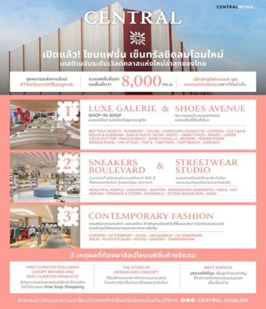 ห้างเซ็นทรัลชิดลม เดสติเนชันการช้อประดับโลกแห่งใหม่ที่สร้างปรากฏการณ์ครั้งยิ่งใหญ่ที่สุดในประวัติศาสตร์ ตอกย้ำการเป็นหมุดหมายแห่งการช้อปของมหานคร #TheStoreOfBangkok ที่พร้อมก้าวสู่การเป็นห้างสรรพสินค้าลักชัวรีตัวจริงใจกลางกรุงเทพฯ โดย ‘Luxe Galerie’, ‘Sneakers Boulevard & Streetwear Studio’ และ ‘Contemporary Fashion’ นี้ถือเป็นเพียงจุดเริ่มต้นของห้างเซ็นทรัลชิดลมโฉมใหม่ และจะมีการเผยโฉมพร้อมเปิดให้บริการแผนกต่าง ๆ ตลอดทั้งปี เพื่อยกระดับประสบการณ์การช้อปให้ยิ่งหรูหรา น่าตื่นตาตื่นใจ สร้างเซอร์ไพรส์ให้กับลูกค้าอย่างต่อเนื่อง ก่อนจะพบกับห้างเซ็นทรัลชิดลมโฉมใหม่อย่างเต็มรูปแบบในเดือนธันวาคม 2567