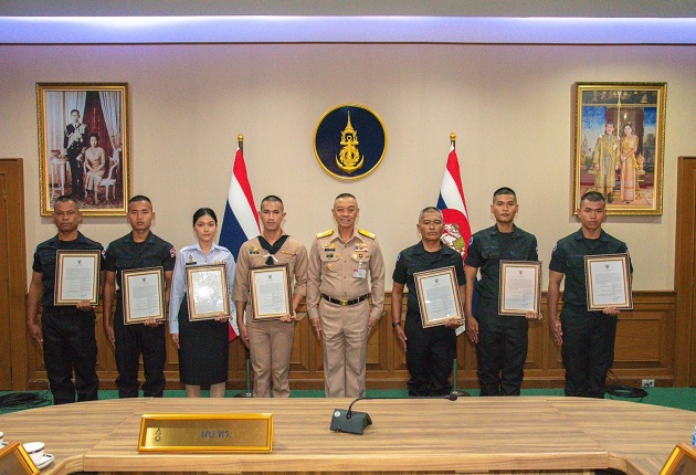 ผบ.ทร. มอบประกาศยกย่องชมเชยกำลังพลกองทัพเรือ ประกอบคุณงามความดีเสียสละช่วยเหลือสังคม
