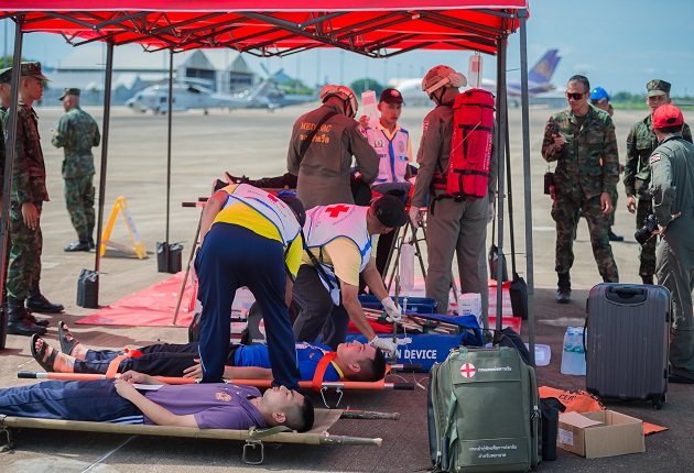 ซึ่งการฝึกครั้งนี้เป็นการบูรณาการร่วมกันระหว่างหน่วยงานภายในกองทัพเรือ กับ หน่วยงานต่าง ๆ ที่อยู่โดยรอบสนามบินอู่ตะเภา ประกอบด้วย 1.รพ.สมเด็จพระนางเจ้าสิริกิติ์ 2.รพ.อาภากรเกียรติวงศ์ 3.รพ. สัตหีบ กม.10 4.รพ.เฉลิมพระเกียรติสมเด็จพระเทพฯ ระยอง 5.สภ.บ้านฉาง 6.สภ.พลูตาหลวง 7.ฝูงบินอิสระปฏิบัติราชการสนาม ฝูงบิน 106 อู่ตะเภา (กองทัพอากาศ) 8.เทศบาลเมืองสัตหีบ 9.เทศบาลเมืองบ้านฉาง 10.อบต. พลูตาหลวง 11.เทศบาลตำบลเกล็ดแก้ว 12.เทศบาลตำบลพลา 13.เทศบาลตำบลสำนักท้อน 14.มูลนิธิพุทธธรรม 15.มูลนิธิสยามรวมใจ 16.มูลนิธิสว่างโรจนธรรมสถาน 17.บริษัท การบินไทย จำกัด (มหาชน) 18.บริษัท การบินกรุงเทพ จำกัด (มหาชน) 19.บริษัท Pattaya Ground Handling จำกัด 20.บริษัท ไทยไลอ้อน เมนทารี จำกัด 21.บริษัท แบ๊กบริการภาคพื้น จำกัด 22.บริษัท พัทยาเอวิเอชั่น จำกัด 23.บริษัท เอสเอฟเอส จำกัด 24.บริษัท อู่ตะเภา แอร์ เซอร์วิส จำกัด 25.บริษัท เอ็มเจ็ท จำกัด 26.บริษัท HS Aviation จำกัด 27.บริษัท ปตท. จำกัด (มหาชน) 28.บริษัท เดลต้า กอล์ฟ โกบัล เซอร์วิสเซส จำกัด