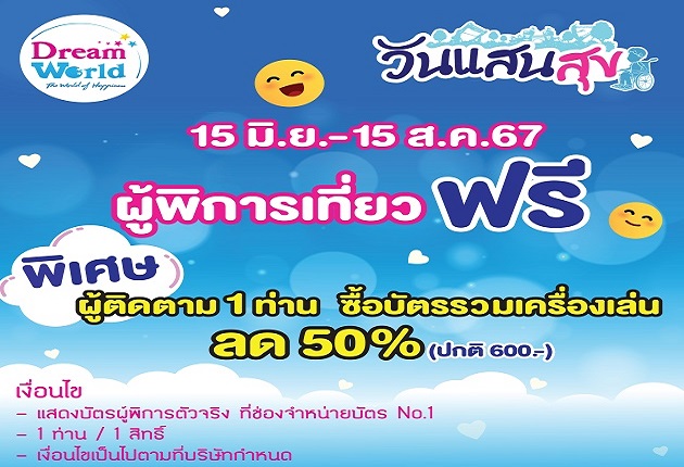 ผู้พิการเที่ยวดรีมเวิลด์ ฟรี 15 มิ.ย. – 15 ส.ค.67 นี้