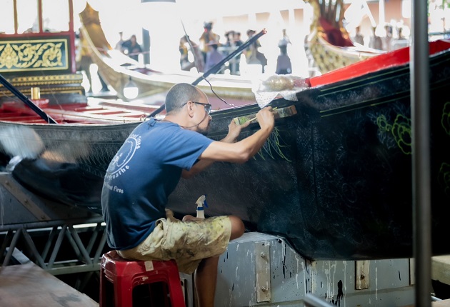 สำหรับการซ่อมบำรุงเรือพระราชพิธี นั้น อู่ทหารเรือธนบุรี กรมอู่ทหารเรือ ได้นำเรือพระที่นั่งรูปสัตว์ รวมถึงเรือในขบวนเรือพระราชพิธีลำอื่น ๆ มาซ่อมบำรุง ซึ่งได้ดำเนินการแล้วเสร็จ จึงทำการส่งมอบให้ กรมศิลปากร เพื่อดำเนินการประดับตกแต่งตัวเรือตามแผนปฏิบัติงานการจัดขบวนเรือพยุหยาตราทางชลมารค พ.ศ.2567 โดยการดำเนินการในส่วนของกรมศิลปากร จะเป็นการตกแต่งรายละเอียด เช่น วาดลวดลาย ติดกระจกเกรียบกระจกสีทำจากแร่ดีบุก ซึ่งอยู่ในความดูแลของสำนักช่างสิบหมู่ กรมศิลปากร ซึ่งคาดว่าจะแล้วเสร็จในวันที่ 30 มิถุนายน 2567 ก่อนจะมีการอัญเชิญเรือพระที่นั่งลงน้ำ เพื่อเตรียมการในส่วนของการฝึกซ้อมฝีพายต่อไป