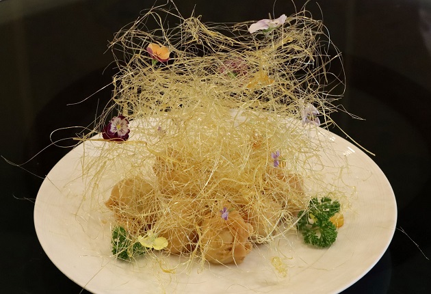 จากกล้วยหอมทองที่คัดคุณภาพ สุกกำลังดีมาคลุกแป้งสูตรพิเศษลับเฉพาะ ทอดจนเหลืองทอง อาจเป็นเมนูธรรมดาที่คุณก็เคยพบเห็นมาก่อน แต่เชฟ “ตุ๊” นราพงษ์ กองคำ Chinese Chef ประจำห้องอาหารจีนหยก โรงแรม ดิ เอมเมอรัลด์ ได้รังสรรค์ประดิดประดอยความสวยงามที่ประณีตและพิถีพิถัน ด้วยใยไหมเงางาม เพิ่มมูลค่าให้น่าชมและรสชาติที่อร่อยหวานกำลังดี เป็นเมนู “กล้วยหอมทอดใยไหม” ราคาเพียงที่ละ 399 บาท++ (10 ชิ้น) สามารถมาสั่งทานได้ทั้งมื้อกลางวันและมื้อเย็น