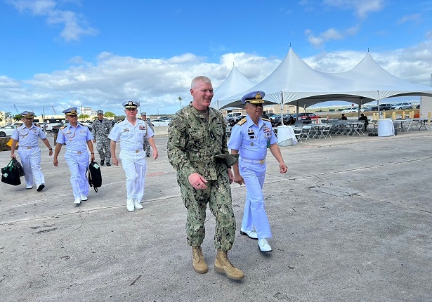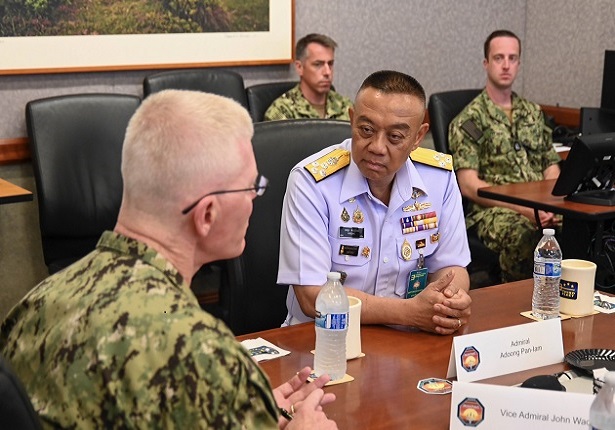 พล.ร.อ.อะดุง พันธุ์เอี่ยม ผู้บัญชาการทหารเรือ (ผบ.ทร.) เดินทางไปตรวจเยี่ยมกำลังพลกองทัพเรือที่เข้ารับการฝึกผสม RIMPAC 2024 ณ Pacific Warfighting Center มลรัฐฮาวาย สหรัฐอเมริกา โดยมี พล.ร.ท.John Wade ผู้บัญชาการกองเรือที่ 3 กองทัพเรือสหรัฐฯ ให้การต้อนรับ พร้อมทั้งเข้ารับฟังการบรรยายสรุปภาพรวมของการฝึกผสม RIMPAC 2024 โดยหลังจากนั้น ผู้บัญชาการทหารเรือ ได้ให้นโยบายและคำแนะนำกับกำลังพลของกองทัพเรือที่เข้าร่วมฝึก