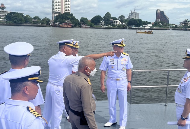เสนาธิการทหารเรือ ตรวจความพร้อม รับคณะนายกรัฐมนตรี ตรวจเส้นทางการจัดขบวนพยุหยาตราทางชลมารค ในการพระราชพิธีเสด็จพระราชดำเนินถวายผ้าพระกฐิน ณ วัดอรุณราชวรารามราชวรวิหาร