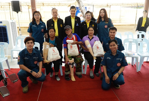 มูลนิธิป่อเต็กตึ๊ง สนับสนุนค่าพาหนะ และเครื่องอุปโภคบริโภค ให้แก่ผู้รับขาเทียม ช่างและอาสาสมัคร ในโครงการออกหน่วยทำขาเทียมพระราชทานเคลื่อนที่ ครั้งที่ 169 จังหวัดนครปฐม