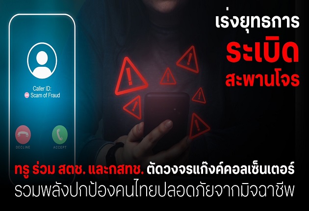 นายจักรกฤษณ์ อุไรรัตน์ หัวหน้าคณะผู้บริหารด้านกิจการองค์กร บมจ. ทรู คอร์ปอเรชั่น กล่าวว่า ทรูพร้อมร่วมมือทุกภาคส่วน ปกป้องคนไทยจากภัยแก๊งค์คอลเซ็นเตอร์ โดยเฉพาะยุทธการ “ระเบิดสะพานโจร” ที่เจ้าหน้าที่ฝ่ายความมั่นคง สำนักงานตำรวจแห่งชาติ และ กสทช. ได้เร่งปฏิบัติการเพื่อปราบปรามแก๊งค์คอลเซ็นเตอร์ ที่ตั้งอยู่ในประเทศเพื่อนบ้านตามแนวชายแดน โดยทรูได้ดำเนินการปิดเสาสัญญาณโทรศัพท์เคลื่อนที่ตามแนวชายแดนทั้งหมด ทั้งนี้จะไม่มีผลกระทบต่อสุจริตชนตามแนวชายแดนไทย รวมทั้งได้ให้ข้อมูลชี้เบาะแส ปิดตู้ชิมที่ช่วยเหลือกลุ่มคนร้ายในการลงทะเบียนซิมมาหลอกลวงประชาชน เพื่อเป็นประโยชน์ในการปราบปรามอาชญากรรมทางไซเบอร์ โดยเฉพาะการแจ้งข้อมูลกลุ่มบุคคลต้องสงสัยที่เข้ามาซื้อซิมในร้านค้า นอกจากนี้ ทรูยังมีมาตรการเชิงรุกที่นำมาใช้ครอบคลุมทั้งมาตรการการขายที่เข้มงวดรัดกุมขึ้น คุมเข้มคู่ค้ารายย่อย โดยกำหนดให้มีการลงทะเบียนซิมทันทีที่ขาย และมีการตรวจสอบข้อมูลอย่างเข้มงวด หากพบฝ่าฝืนจะมีบทลงโทษ ตั้งแต่ตักเตือน ลดค่าตอบแทน ไปจนถึงยกเลิกสัญญา และยังได้ดึงเทคโนโลยี AI และ Data Analytic เข้ามาตรวจสอบและประมวลผลการลงทะเบียนซิมที่มีความเสี่ยงต่อการนำไปใช้ในทางที่ไม่ถูกต้องได้อย่างมีประสิทธิภาพ ซึ่งจะลดจำนวนซิมที่อาจจะถูกนำไปใช้ในทางผิดกฎหมาย เรามั่นใจว่าด้วยความร่วมมือของทุกภาคส่วน จะตัดช่องทางการสื่อสารของเหล่าแก๊งค์คอลเซ็นเตอร์มิจฉาชีพ ป้องกันความเสียหายที่จะเกิดขึ้นกับประชาชนชาวไทย
