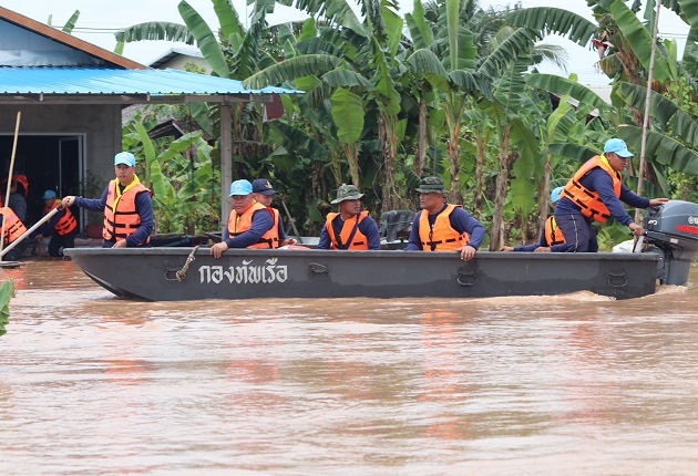 วันที่ 17 ก.ย.567 กองทัพเรือ โดยศูนย์บรรเทาสาธารณภัย หน่วยเรือรักษาความสงบเรียบร้อยตามลำแม่น้ำโขง ได้จัดกำลังจาก หน่วยบรรเทาสาธารณภัยสถานีเรือบ้านแพง หน่วยเรือรักษาความสงบเรียบร้อยตามลำแม่น้ำโขง เขตนครพนม ร่วมกับกำลังพลกองเรือลำน้ำ กองเรือยุทธการ ที่เดินทางมาเสริมกำลังในการช่วยเหลือประชาชนที่ได้รับผลกระทบจากอุทกภัย ในพื้นที่จังหวัดนครพนม ได้ออกช่วยเหลือประชาชนบริเวณ หมู่ 7 บ้านดอนแพง ต.บ้านแพง อ.บ้านแพง จ.นครพนม ซึ่งเป็นพื้นที่น้ำโขงล้นตลิ่งเข้าท่วมบ้านเรือนประชาชน และพื้นที่การเกษตร โดยได้สำรวจความต้องการของประชาชนที่ยังคงพักอาศัยอยู่ในพื้นที่ และมอบถุงยังชีพเพื่อเป็นการบรรเทาในเบื้องต้น นอกจากนี้กำลังพลของสถานีเรือบ้านแพง และกองเรือลำน้ำ กองเรือยุทธการ ได้เข้าช่วยเหลือประชาชนในพื้นที่บ้านนาเข ต.นาแข อ.บ้านแพง ในการเคลื่อนย้ายสุกรของชาวบ้านอพยพไปไว้ยังที่สูง