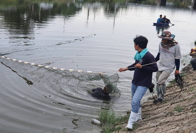 ก่อนหน้านี้ ซีพีเอฟสนับสนุนอวนทับตลิ่ง ประมงจังหวัดเพชรบุรี องค์การบริหารตำบล เกษตรจังหวัด และสำนักงานพัฒนาที่ดิน จัดกิจกรรมจับปลาที่คลองในตำบลนาพันสาม อำเภอเมือง จังหวัดเพชรบุรี โดยสามารถจับปลาหมอคางดำได้ 103 กิโลกรัม ขณะเดียวกันยังจับได้ปลาชนิดอื่นอีกด้วย เช่น ปลาช่อน ปลานิล เป็นต้น สำหรับปลาหมอคางดำที่จับได้ ประมงจังหวัดส่งต่อให้องค์การบริหารตำบลบ้านหม้อเพื่อทำน้ำหมักชีวภาพ สำหรับแจกจ่ายให้กับเกษตรกรในพื้นที่ใช้กับแปลงเพาะปลูก