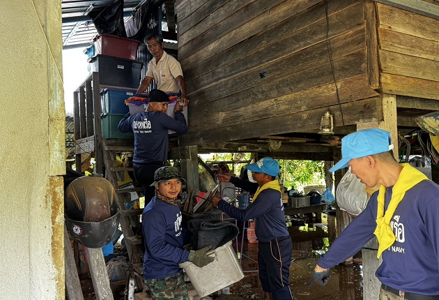 ในการนี้ กองทัพเรือ โดย พล.ร.อ.อะดุง พันธ์เอี่ยม ผู้บัญชาการทหารเรือ (ผบ.ทร.) ในฐานะผู้บัญชาการศูนย์บรรเทาสาธารณภัยกองทัพเรือ จึงได้สั่งการให้หน่วยต่าง ๆ ของกองทัพเรือในทุกพื้นที่ เร่งให้การช่วยเหลือประชาชนที่ได้รับความเดือดร้อน รวมถึงทำการสำรวจพื้นที่และติดตามสถานการณ์น้ำอย่างใกล้ชิด โดย ศูนย์บรรเทาสาธารณภัยกองทัพเรือได้เฝ้าติดตามสถานการณ์อย่างต่อเนื่อง และเตรียมความพร้อมในการช่วยเหลือประชาชนในพื้นที่รับผิดชอบได้อย่างทันท่วงที