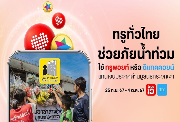 ทุกพอยท์ ทุกคอยน์คือพลังน้ำใจ…ทรู คอร์ป ชวนลูกค้าทรู ดีแทค ใช้ทรูพอยท์ ดีแทคคอยน์ มอบแทนเงินบริจาค ช่วยอุทกภัยภาคเหนือ ผ่านมูลนิธิกระจกเงา ได้แล้ววันนี้ทาง ทรูไอดี และ ดีแทคแอป