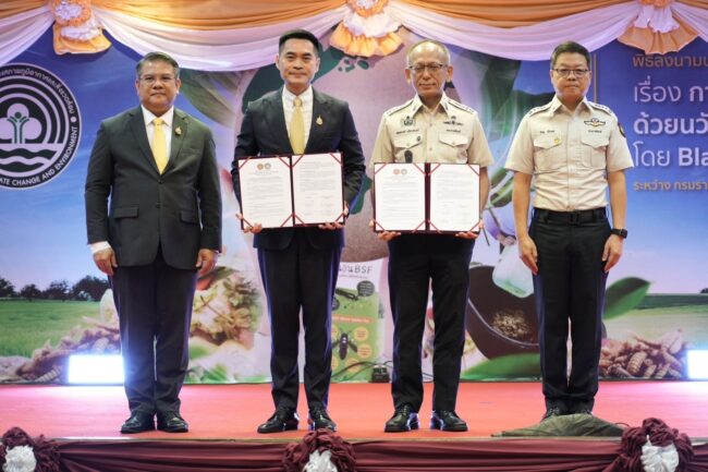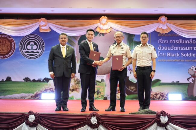 ด้าน ดร.พิรุณ สัยยะสิทธิ์พานิช อธิบดีกรมการเปลี่ยนแปลงสภาพภูมิอากาศและสิ่งแวดล้อม กล่าวว่า การจัดการขยะมูลฝอยเป็นหนึ่งในกิจกรรมที่มีการปล่อยก๊าซเรือนกระจกและก่อให้เกิดสภาวะโลกร้อน ซึ่งกว่าร้อยละ 35-40 ของขยะมูลฝอยชุมชนเป็นขยะเศษอาหาร นโยบายด้านการจัดการขยะมูลฝอยชุมชน จึงมุ่งเน้นการลดปริมาณขยะมูลฝอยตั้งแต่ต้นทาง ตามหลัก 3R (Reduce Reuse และ Recycle) และการคัดแยกขยะ เพื่อนำขยะมูลฝอยแต่ละประเภทไปกำจัดอย่างถูกวิธีและเป็นไปตามมาตรฐานที่กำหนด โดยกระบวนการจัดการขยะมูลฝอยชุมชนที่ใช้ในปัจจุบัน อาทิ ระบบฝังกลบแบบถูกหลักสุขาภิบาล ระบบหมักทำปุ๋ย ระบบหมักแบบไร้อากาศ การเผาในเตาเผาและเผากลางแจ้ง มีการปล่อยก๊าซเรือนกระจกกว่า 8.66 ล้านตันคาร์บอนไดออกไซด์เทียบเท่า ซึ่งมากกว่าร้อยละ 50 ของปริมาณการปล่อยในภาคของเสียทั้งหมด (16.88 MtgCO2eq) (ข้อมูล ณ ปี พ.ศ. 2562/ค.ศ. 2019) กรมลดโลกร้อนจึงได้ร่วมกับกรมราชทัณฑ์ในการจัดการขยะเศษอาหารที่ต้นทางอย่างเหมาะสมด้วยหนอน BSF โดยได้มีการถ่ายทอดองค์ความรู้ให้แก่เรือนจำและทัณฑสถานในรูปแบบออนไลน์กว่า 136 แห่ง และลงมือปฏิบัติในพื้นที่นำร่อง 7 แห่ง พบว่า สามารถจัดการกับขยะเศษอาหารได้ดี และยังนำผลผลิตจากหนอน BSF ไปใช้ประโยชน์ทางการเกษตร ทั้งเป็นอาหารสัตว์และปุ๋ยอินทรีย์ การลงนาม MOU ในวันนี้ จึงเป็นอีกก้าวสำคัญของการขยายผลแนวทางการดำเนินงานไปสู่การปฏิบัติในพื้นที่อย่างแท้จริง