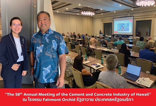 เอสซีจี ซีเมนต์แอนด์กรีนโซลูชันส์ โดย นางสาวอมรรัตน์ แสนสุรีย์รังสิกุล Quality Assurance Manager – บริษัท ปูนซิเมนต์ไทย (แก่งคอย) จำกัด ร่วมบรรยายในงานประชุม “The 58th Annual Meeting of the Cement and Concrete Industry of Hawaii” ที่จัดโดย บริษัท Hawaiian Cement พันธมิตรสำคัญทางธุรกิจ ณ โรงแรม Fairmont Orchid รัฐฮาวาย ประเทศสหรัฐอเมริกา ในหัวข้อ “Ensuring Quality and Innovation: SCG’s Low Carbon Cement for Hawaiian Cement”