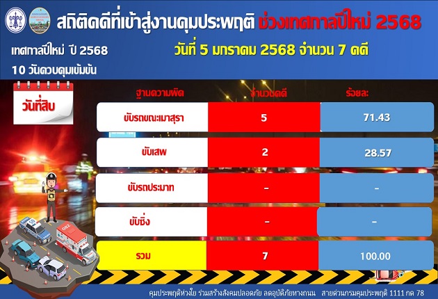 • คดีขับรถประมาท 4 คดี (ร้อยละ 0.05)
