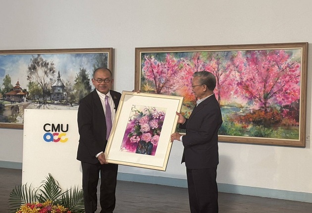 นายชวน หลีกภัย อดีตนายกรัฐมนตรี อดีตประธานรัฐสภาและประธานสภาผู้แทนราษฎร ฐาปนันดรศิลปิน เป็นประธานในพิธีเปิดนิทรรศการศิลปะนานาชาติ รวมพลศิลปินสีน้ำระดับโลก ซึ่ง คณะวิจิตรศิลป์ มหาวิทยาลัยเชียงใหม่ และภาคีพันธมิตร จัดขึ้นในโอกาสเฉลิมฉลองครบรอบ 60 ปี การก่อตั้งมหาวิทยาลัยเชียงใหม่ The CMU 60 th anniversary World Mastercolor Exposition, “Lanna Landscape” สะท้อนความงามของภูมิทัศน์และวัฒนธรรมล้านนาผ่านสีน้ำ โดยในงานมีศิลปินสีน้ำชาวไทยและต่างประเทศที่มีชื่อเสียง นำผลงานมาร่วมจัดแสดงกว่า 300 ชิ้น