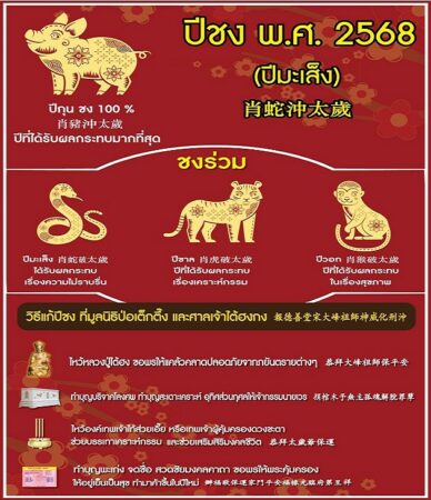รวมถึงทำบุญสะเดาะเคราะห์และเสริมความเป็นสิริมงคลกับรูปปั้นนักษัตรปีมะเส็ง พร้อมรับประทาน “สาคูสิริมงคล” เพื่อความกลมเกลียวและอยู่เย็นเป็นสุข อัญเชิญ “ฮู้แดง” (ยันต์) ของหลวงปู่ไต้ฮง เพื่อนำไปประทับหน้าบ้าน เคหะสถาน หรือพกติดตัวเพื่อคุ้มครอง “เคาะระฆังทอง” ให้ก้องกังวานเพื่อให้ชีวิตสดใส การงานรุ่งเรืองระบือไกล และ ร่วมพิธี “เวียนธูปศักดิ์สิทธิ์” เพื่อขอพรเทพยดาฟ้าดิน เนื่องในวันประสูติ (ทีกงแซ) ซึ่งในปีนี้ตรงกับวันพุธที่ 5 กุมภาพันธ์ 2568 ขออำนาจฟ้าดินเป็นที่พึ่ง ขอให้สิ่งศักดิ์สิทธิ์ที่ตนนับถือ เช่น หลวงปู่ไต้ฮง ช่วยดลบันดาลให้ประสบโชคดีตลอดปีใหม่ (โดยในวันที่ 28 มกราคม และ 5 กุมภาพันธ์ 2568 มูลนิธิป่อเต็กตึ๊ง เปิดบริการโต้รุ่ง)