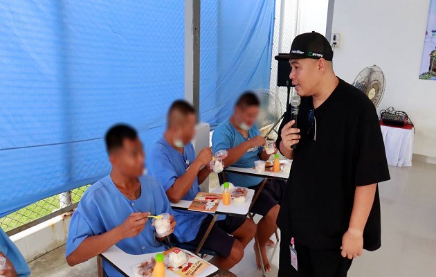 โดยวันนี้ได้เชิญ “น้องต่อไอติมแข็ง” อดีตผู้ก้าวพลาดจากเรือนจำกลางชลบุรี ที่ประสบความสำเร็จในการประกอบอาชีพและเป็นคนต้นแบบให้กับเพื่อน ๆ ผู้ต้องขังในการกลับตนเป็นพลเมืองดีมาเป็นวิทยากรพร้อมมอบอาหารและขนมให้กับผู้เข้ารับการอบรมด้วย