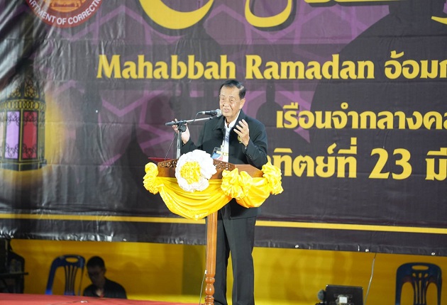 โดยในวันนี้ นายวันมูหะมัดนอร์ มะทา ประธานสภาผู้แทนราษฎร ได้กล่าวให้กำลังใจผู้ต้องขังทุกคน “ขอให้ทุกคนได้มีความพยายามและอดทนเรียนรู้สู่การพัฒนาพฤตินิสัย พัฒนาศักยภาพของตน เพื่อเตรียมพร้อมกลับสู่ครอบครัวอันเป็นที่รักและสู่อ้อมกอดของสังคมที่จะได้ร่วมกันสร้างสรรค์ต่อไป และในโอกาสนี้ ขอขอบคุณท่านผู้มีเกียรติทุกท่านที่มาร่วมกิจกรรม ร่วมสนับสนุน ร่วมให้กำลังใจ ให้โอกาสแก่ผู้ต้องขัง และขออวยพรให้ท่านผู้มีเกียรติทุกท่าน เจ้าหน้าที่ และผู้ต้องขังเรือนจำกลางคลองเปรมทุกคน ได้ประสบแต่ความสุข ความเจริญ มีสุขภาพพลามัยที่สมบูรณ์แข็งแรง และขอให้พระองค์อัลลอฮ์ ทรงตอบรับต่อกิจปฏิบัติที่ดีงามและการงานที่ดีของพี่น้องมุสลิมในอ้อมกอดแห่งเดือนรอมฏอนนี้ ให้ได้รับความรักความเมตตาจากพระองค์สืบไป”