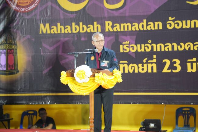 วันนี้ (23 มี.ค.68) เวลา 17.00 น. นายวันมูหะมัดนอร์ มะทา ประธานสภาผู้แทนราษฎร เป็นประธานในพิธีเปิดโครงการ “Mahabbah Ramadan อ้อมกอดแห่งรอมฎอนสู่เรือนจำ” พร้อมด้วย นายอรุณ บุญชม จุฬาราชมนตรี ร่วมเป็นเกียรติในพิธี โดยมี พ.ต.อ.ทวี สอดส่อง รัฐมนตรีว่าการกระทรวงยุติธรรม นางพงษ์สวาท นีละโยธิน ปลัดกระทรวงยุติธรรม นางจิรภา สินธุนาวา รองปลัดกระทรวงยุติธรรม นายสหการณ์ เพ็ชรนรินทร์ อธิบดีกรมราชทัณฑ์ พ.ต.ท.เชน กาญจนาปัจจ์ รองอธิบดีกรมราชทัณฑ์ นายชาญ วชิรเดช รองอธิบดีกรมราชทัณฑ์ ปฎิบัติหน้าที่ผู้บัญชาการเรือนจำกลางคลองเปรม ให้การต้อนรับ