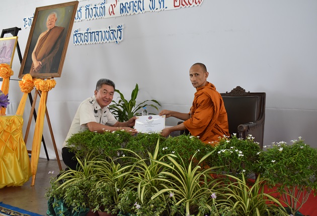 ทั้งนี้ นายเกียรติกร ปัทมทัตต์ ผู้บัญชาการเรือนจำกลางชลบุรี ได้มอบใบประกาศเกียรติคุณแก่ พระครูสรนาถธรรมบาล เลขานุการเจ้าคณะอำเภอเมืองชลบุรี ฝ่ายธรรมยุต ผู้ช่วยเจ้าอาวาสวัดอุทกเขปสีมาราม อ.พนัสนิคม จ.ชลบุรี และอาจารย์จากสถาบันพลังจิตตานุภาพ เพื่อเป็นการขอบคุณในการเป็นวิทยากรจิตอาสาในการร่วมพัฒนา คืนคนดีสู่สังคม ตามนโยบายกรมราชทัณฑ์