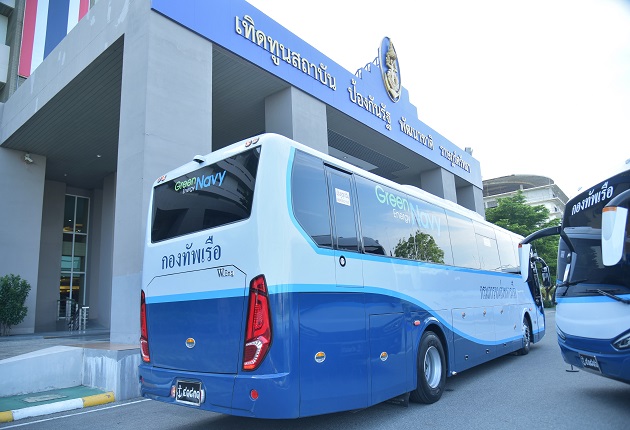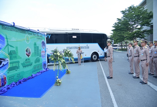 สำหรับกิจกรรมพลังงานสีเขียว (Green Navy Day 2025) ประจำปีงบประมาณ พ.ศ.2568 ประกอบด้วย 2 โครงการ คือ 1) โครงการผลิตพลังงานไฟฟ้าจากพลังงานแสงอาทิตย์แบบติดตั้งบนหลังคา (Solar Rooftop) โรงพยาบาลสมเด็จพระปิ่นเกล้า กรมแพทย์ทหารเรือ (ยุทธศาสตร์ 1 กลยุทธ์ 2 การใช้พลังงานทดแทน) และ 2) โครงการจัดหารถยนต์โดยสารขนาดใหญ่ปรับอากาศ ขับเคลื่อนด้วยพลังงานไฟฟ้า ขนาด 40 ที่นั่ง จำนวน 5 คัน พร้อมสถานีอัดประจุไฟฟ้า 1 สถานี ของกรมขนส่งทหารเรือ (ยุทธศาสตร์ 1 กลยุทธ์ 3 ส่งเสริมการใช้ยานยนต์ไฟฟ้า) โดย Bus EV 5 คัน สามารถวิ่งได้ระยะทางรวม 100,000 กม. ใช้ไฟฟ้า 123,650 กิโลวัตต์ ลดค่าใช้จ่ายเชื้อเพลิงลง 4,684,710 บาท และลดการปล่อย ก๊าซเรือนกระจก ได้ 270.33 ตันต่อปี (เทียบเท่ากับการปลูกต้นสัก 25,360 ต้น)