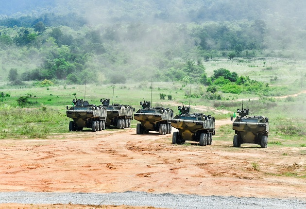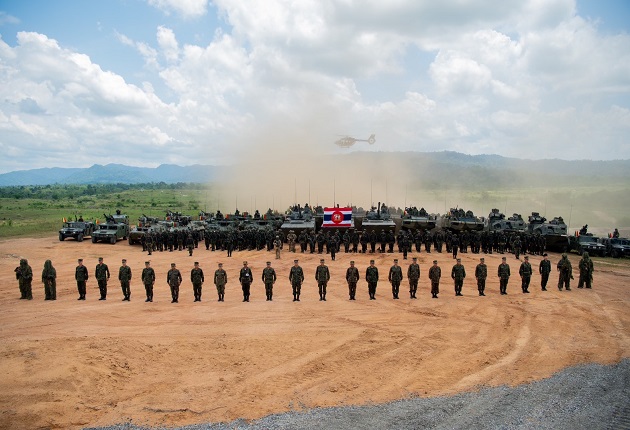สำหรับอาวุธและยุทโธปกรณ์ที่ใช้ในการฝึกในส่วนของกองทัพเรือประกอบด้วย ยานรบสะเทินน้ำสะเทินบก AAV จำนวน 6 คัน ยานเกราะโจมตีสะเทินน้ำสะเทินบก VN16 จำนวน 3 คัน ยานเกราะล้อยาง BTR -3E1 จำนวน 4 คัน รถ AWAV 7 คัน รถยนต์บรรทุกฮัมวี่ 4 คัน ปืนใหญ่สนามขนาด 155 มม.จาก นย. และ สอ.รฝ. หน่วยละ 2 กระบอก ปืนใหญ่สนามขนาด 105 มม. 2 กระบอก ปืนต่อสู้อากาศยานขนาด 40/60 มม. 2 กระบอก อาวุธยิงสนับสนุนภายในอัตรากองพันทหารราบ ชุดแทรกซึมทางอากาศจากกองพันลาดตระเวน กองพลนาวิกโยธิน อากาศยานไร้คนขับแบบ M SOLAR-X 1 ระบบ