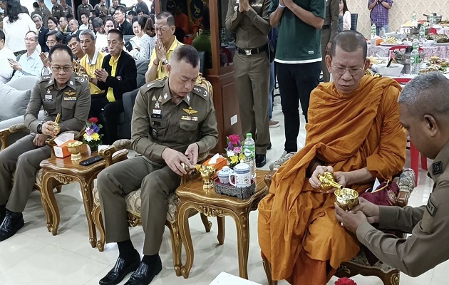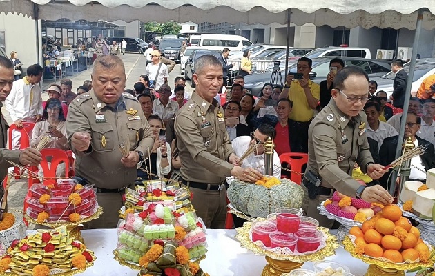 ในการนี้ได้กราบอาราธนา พระพรหมโมลี เจ้าอาวาสวัดปากน้ำ ภาษีเจริญ และ พระธรรมวชิรเมธี เจ้าคณะภาค 1 เจ้าอาวาสวัดหงส์รัตนารามราชวรวิหาร เจริญพระพุทธมนต์ และ ถวายภัตตาหารเพล เพื่อเป็นสิริมงคล และเป็นการสร้างเสริมคุณธรรม จริยธรรม ให้กับข้าราชการตำรวจในสังกัด