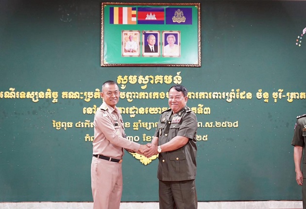 ระหว่างวันที่ 29 – 30 เม.ย. 2568 พล.ร.ท.อภิชาติ ทรัพย์ประเสริฐ ผู้บัญชาการป้องกันชายแดนจันทบุรีและตราด นายทหารผู้ใหญ่ ฝ่ายอำนวยการกองบัญชาการป้องกันชายแดนจันทบุรีและตราด ตลอดจนผู้บังคับหน่วยขึ้นตรงกองบัญชาการป้องกันชายแดนจันทบุรีและตราด เดินทางไปเยี่ยมเยือน กองบัญชาการภูมิภาคทหารที่ 3 กองทัพบก กัมพูชา โดยมี พล.ต.อุย เฮียง ผู้บัญชาการภูมิภาคทหารที่ 3 กองทัพบก กัมพูชา ให้การต้อนรับ และเข้าร่วมประชุมเพื่อพัฒนาสัมพันธ์ หารือความร่วมมือด้านความมั่นคงตามแนวชายแดน ณ กองบัญชาการภูมิภาคทหารที่ 3 กองทัพบก กัมพูชา ประเทศกัมพูชา