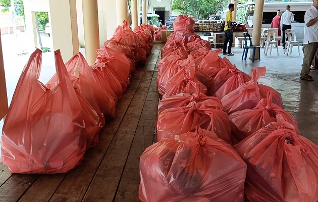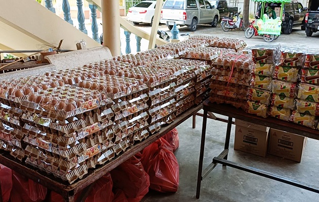 สำหรับถุงยังชีพ ประกอบด้วย ข้าวสาร อาหารแห้ง บะหมี่กึ่งสำเร็จรูป เส้นหมี่กึ่งสำเร็จรูป ปลากระป๋อง น้ำดื่ม ไข่ ขนมอบกรอบ ข้าวเกรียบกุ้ง และอื่น ๆ