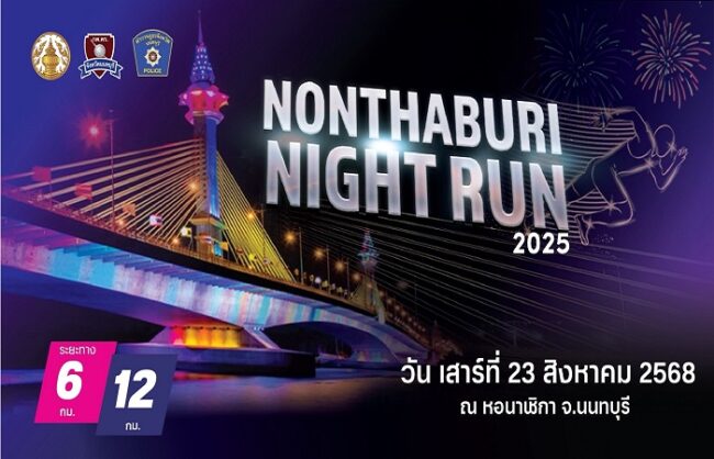 โดยงาน “Nonthaburi Night Run 2025” จะจัดขึ้นในคืนวันเสาร์ที่ 23 สิงหาคม 2568 ปล่อยตัวเวลา 20.00 น. ณ หอนาฬิกา ท่าน้ำนนท์ จังหวัดนนทบุรี มีให้เลือก 2 ระยะ นั่นคือ ระยะ 6 กิโลเมตร และ 12 กิโลเมตร สมัครได้แล้ววันนี้ ที่ https://race.thai.run/nonthaburinightrun2025