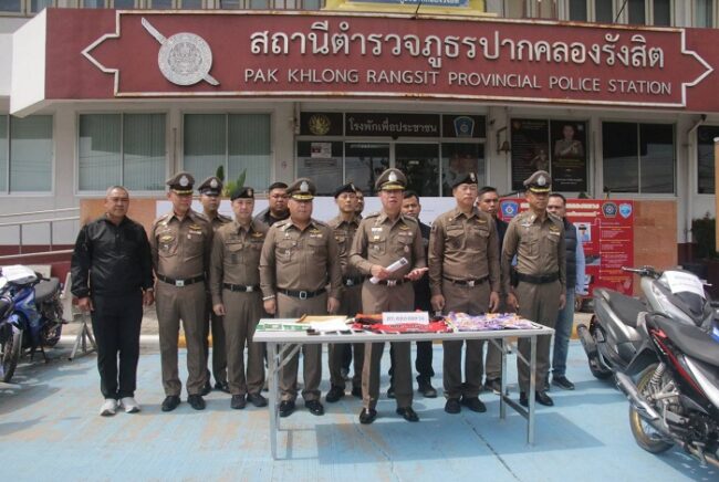 คดีที่ 1 จับแก๊งโจรกรรมรถจักรยานยนต์ในพื้นที่ สภ.ปากคลองรังสิต เหตุเกิดเมื่อวันที่ 18 พ.ค.68 ผู้เสียหายนำรถจักรยานยนต์ยี่ห้อฮอนด้า เวฟ 110 ไอ ไปจอดที่สถานีรถไฟฟ้าหลักหก ต่อมาวันที่ 19 พ.ค.68 พบว่ารถหาย จึงแจ้งความกับเจ้าหน้าที่ตำรวจ จากการสืบสวนสามารถจับกุมตัวผู้ก่อเหตุ 3 ราย คือ 1.นายภูมิ อายุ 18 ปี เคยต้องโทษลักทรัพย์ในเวลากลางคืน 8 คดี, 2.นายฟรองซ์ อายุ 26 ปี, 3.น.ส.อีฟ อายุ 26 ปี ผู้ต้องหา ให้การว่า ได้นำรถจักรยานยนต์ที่โจรกรรม ไปขายให้นายหรั่ง (นามสมมติ) อายุ 26 ปี ซึ่งพักอาศัยอยู่ใน ต.ลำลูกกา อ.ลำลูกกา จ.ปทุมธานี ผลการตรวจค้นบ้านนายหรั่ง พบรถจักรยานยนต์ที่ถูกโจรกรรม 2 คัน ตรวจสอบพบว่า นายหรั่ง กำลังจะนำรถทั้งสองคันขึ้นรถตู้ เพื่อไปขายต่อที่เขตมีนบุรี นายหรั่ง รับสารภาพว่า เริ่มรับซื้อรถจักรยานยนต์ที่ถูกโจรกรรมมาตั้งแต่เดือนธันวาคม 2567 จนถึงปัจจุบัน รวมระยะเวลา 6 เดือน ได้รับซื้อรถมาแล้ว มากกว่า 135 คัน จากการตรวจสอบบัญชีธนาคาร พบยอดเงินหมุนเวียนทั้งสิ้น 11,227,970 บาท นายหรั่ง ส่งรถให้เพื่อนใน Facebook เพื่อปลอมแปลงเอกสาร โดยเก็บค่าดำเนินการคัดสำเนารถ 300 บาต่อคัน, สำเนาบัตรประชาชน 400 บาทต่อคัน ตั้งแต่วันที่ 1 พ.ค.68 พบว่า นายหรั่ง ขายรถที่ถูกโจรกรรมไปแล้ว 26 คัน ในพื้นที่กรุงเทพฯ และปริมณฑล โดยมี 8 โรงพัก ที่มีการแจ้งหาย จึงได้แจ้งข้อกล่าวข้อกล่าวหา “ร่วมกันลักทรัพย์ โดยใช้ยานพาหนะ เพื่อความสะดวกแก่การกระทำความผิด หรือพาทรัพย์นั้นไป หรือเพื่อให้พ้นการจับกุม หรือรับของโจร”