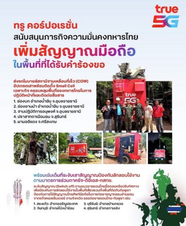 ทรู คอร์ปอเรชั่น สนับสนุนทุกภารกิจความมั่นคงเพิ่มประสิทธิภาพสัญญาณในพื้นที่ตามคำขอภาครัฐ