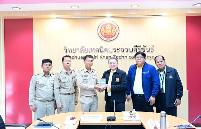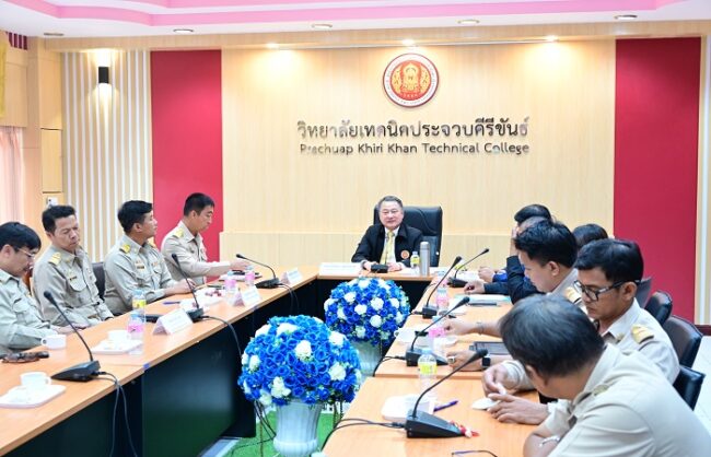 หลังจากนั้น เวลา 14.00 น. ได้ไปสัญจรเพื่อสร้างขวัญกำลังใจ ณ วิทยาลัยเทคนิคประจวบคีรีขันธ์ พร้อมทั้งเยี่ยมชมอาคารสถานที่ ห้องเรียน ห้องปฏิบัติการของวิทยาลัยที่มีความพร้อมและศักยภาพในหลายด้านการนำเทคโนโลยีเข้ามาช่วยในการบริหารจัดการงานของวิทยาลัย การมีส่วนร่วมของภาคเอกชนที่เข้มแข็งมีศูนย์การเรียนรู้สาขาวิชายานยนต์ไฟฟ้า EV ที่ได้รับการสนับสนุนจากภาคเอกชน เพื่อเป็นศูนย์กลางการบริการวิชาการ และวิชาชีพ ได้มอบนโยบายการบริหารยุทธศาสตร์ของวิทยาลัย และการดำเนินการ เช่นเดียวกับวิทยาลัยการอาชีพวังไกลกังวล ซึ่งผู้เข้าร่วมประชุมได้ร่วมแลกเปลี่ยนเรียนรู้เพื่อจดจำหลักคิดสู่หลักปฏิบัติได้อย่างถูกต้อง สอดคล้องรูปแบบ “เข้าใจ จำได้ ใช้เป็น” ในโอกาสดังกล่าวได้มีการซักถามจากครู อาจารย์ถึงแนวทางการบริหารจัดการการเรียนการสอนระดับปริญญาตรี แนวทางการแก้ปัญหาเรื่องค่าสอนเกินภาระงาน แนวทางการบูรณาการการสอนสู่ความสำเร็จ การสร้างนวัตกรรม และการเผยแพร่นวัตกรรม รวมถึงการจดสิทธิบัตรหรืออนุสิทธิบัตรในอนาคตเพื่อความยั่งยืนต่อไป