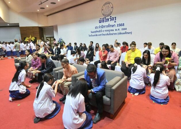 วันนี้ (17 ก.ค.68) เวลา 09.00 น. ที่ศูนย์ศิลปวัฒนธรรมเฉลิมพระเกียรติ 6 รอบ พระชนมพรรษา มหาวิทยาลัยศิลปากร พระราชวังสนามจันทร์ จ.นครปฐม ผู้สื่อข่าวรายงานว่า โรงเรียนสาธิต มหาวิทยาลัยศิลปากร (มัธยมศึกษา) จัดพิธีไหว้ครู และสานสัมพันธ์น้องพี่ ประจำปีการศึกษา 2568 โดยได้รับเกียรติจาก ศ.ดร.คณิต เขียววิชัย คณบดีคณะศึกษาศาสตร์ รักษาการแทนผู้อำนวยการโรงเรียนสาธิต มหาวิทยาลัยศิลปากร (มัธยมศึกษา) เป็นประธานในพิธี พร้อมทั้งกล่าวให้โอวาทแก่นักเรียนชั้นมัธยมศึกษาปีที่ 1-6 โดยนักเรียนทุกคนได้ร่วมกันแสดงความรัก เคารพ และระลึกถึงพระคุณของคุณครู ท่ามกลางบรรยากาศความรักความผูกพัน และความอบอุ่น และต่อมาเวลา 13.00 น. กิจกรรมสานสัมพันธ์น้องพี่ ต้อนรับน้อง ๆ นักเรียนชั้น ม.1 และ ม.4 เพื่อเข้ามาในบ้านสาธิตศิลปากร ที่เต็มไปด้วยความสุข