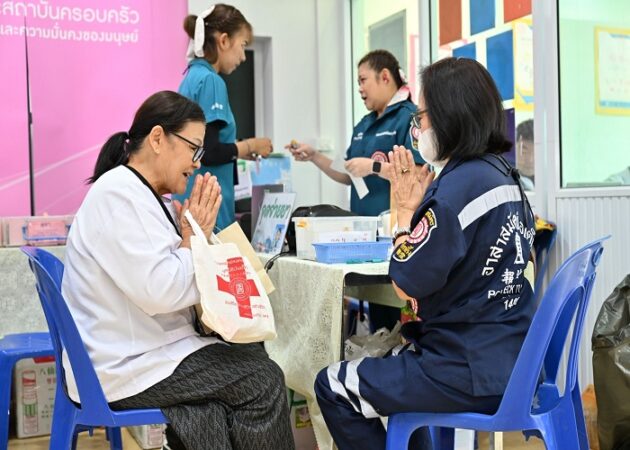 นอกจากนี้ มูลนิธิฯ ยังจัดหน่วยแพทย์สงเคราะห์ชุมชน นำทีมแพทย์อาสาฯ เจ้าหน้าที่หน่วยแพทย์ ทีมบรรเทาสาธารณภัย (กู้ชีพ) และอาสาสมัครออกหน่วยให้บริการประชาชนในพื้นที่ฟรี ประกอบด้วย บริการตรวจรักษาโรคทั่วไป จ่ายยา ทันตกรรม คัดกรองเบาหวาน กิจกรรมนันทนาการ ตรวจวัดสายตาพร้อมแจกแว่น บริการตัดผม ฯลฯ โดยมี นางสุดา สุหลง รองอธิบดีกรมกิจการสตรีและสถาบันครอบครัว พร้อมด้วย นางสาววีรินท์ นิตย์สุวรรณ พัฒนาสังคมและความมั่นคงของมนุษย์ จังหวัดศรีสะเกษ นางสาวศุภวรรณ ขูดแก้ว ผู้อำนวยการกองคุ้มครองและพัฒนาอาชีพ นางสาวจุรีพร ภิบาลจันทร์ ผู้อำนวยการศูนย์เรียนรู้การพัฒนาสตรีและครอบครัวภาคตะวันออกเฉียงเหนือ จ.ศรีสะเกษ และ นางสาวอัญชลี จงคดีกิจ (ปุ๊-อัญชลี) อาสาสมัครศิลปินมูลนิธิป่อเต็กตึ๊ง ร่วมในพิธี ณ ศูนย์เรียนรู้การพัฒนาสตรีและครอบครัวภาคตะวันออกเฉียงเหนือ จ.ศรีสะเกษ