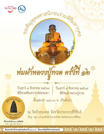 ททท. ขอเชิญชวนนักท่องเที่ยวร่วมทำบุญ ห่มผ้า หลวงปู่ทวดองค์ใหญ่ ครั้งที่ 12 วัดห้วยมงคล อำเภอหัวหิน จังหวัดประจวบคีรีขันธ์ 8-9 สิงหาคม 2568