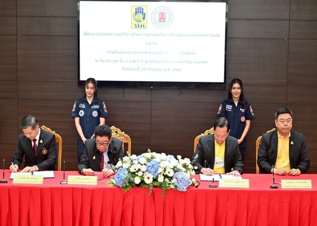 วันนี้ (29 ก.ค.68) มูลนิธิป่อเต็กตึ๊ง โดย นายสัก กอแสงเรือง รองประธานกรรมการ ในนามของผู้แทนประธานกรรมการมูลนิธิฯ พร้อมด้วย นายวิชิต ชินวงศ์วรกุล รองประธานกรรมการ ร่วมกับ กรมป้องกันและบรรเทาสาธารณภัย โดย นายภาสกร บุญญลักษม์ อธิบดีกรมป้องกันและบรรเทาสาธารณภัย พร้อมด้วย นายชัยรัตน์ แก้วเพียงเพ็ญ รองอธิบดีกรมป้องกันและบรรเทาสาธารณภัย ลงนามบันทึกความเข้าใจ (MOU) ว่าด้วยความร่วมมือในการป้องกันและบรรเทาสาธารณภัย ผนึกกำลังทั้งทางด้านวิชาการ และการปฏิบัติการอันเป็นการบูรณาการการจัดการเพื่อเสริมสร้างศักยภาพขีดความสามารถของเจ้าหน้าที่และอาสาสมัครมูลนิธิฯ และเตรียมความพร้อมรับมือสาธารณภัยให้สามารถบริหารจัดการและปฏิบัติการตอบโต้เหตุฉุกเฉินได้อย่างมีประสิทธิภาพ พร้อมยกระดับขอบเขตหน้าที่ของมูลนิธิฯ อาทิ การร่วมกับทางกรมป้องกันและบรรเทาสาธารณภัยด้านการฝึกอบรมให้ความรู้ในการป้องกันและบรรเทาสาธารณภัย พร้อมสนับสนุนงบประมาณเครื่องมืออุปกรณ์ที่จำเป็นเพื่อรองรับการฝึกอบรม โดยมี นางศิริกุล โอภาสวงศ์ กรรมการและเลขาธิการ เป็นผู้กล่าววัตถุประสงค์ นายวิรุฬ เตชะไพบูลย์ ที่ปรึกษาประธานกรรมการมูลนิธิฯ พร้อมด้วยคณะกรรมการ และผู้บริหารของมูลนิธิป่อเต็กตึ๊ง รวมทั้งผู้บริหารของกรมป้องกันและบรรเทาสาธารณภัย กระทรวงมหาดไทย ร่วมในพิธี ณ ห้องประชุมชั้น 2 อาคาร 2 มูลนิธิป่อเต็กตึ๊ง พลับพลาไชย กรุงเทพฯ