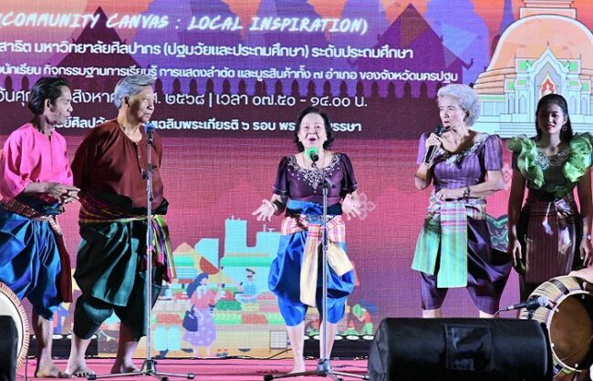 และร่วมชมพิธีเปิด ชมการแสดงเบิกโรง โดยนักเรียนระดับปฐมวัย และขบวนทัพศิลปิน 7 ชุมชน พร้อมด้วยทัพ CIOFF Korea เคลื่อนเข้าสู่บนเวที โดยตัวแทนนักเรียนระดับปฐมวัย และระดับชั้นประถมศึกษา การแสดงจากประเทศเกาหลี CIOFF @Korea และการแสดงลำตัดหวังเต๊ะ-แม่ศรีนวล และร่วมเรียนรู้กิจกรรมฐานการเรียนรู้ศิลปะท้องถิ่นโดยวิทยากรจาก 7 อำเภอ ฐานกิจกรรมศิลปะท้องถิ่น 7 ชุมชน ดังนี้ ฐาน 1 ชุมชนเมืองนครปฐม , ฐาน 2 ชุมชนนครชัยศรี , ฐาน 3 ชุมชนบางเลน , ฐาน 4 ชุมชนสามพราน , ฐาน 5 ชุมชนอำเภอดอนตูม , ฐาน 6 ชุมชนพุทธมณฑล , ฐาน 7 ชุมชนกำแพงแสน
