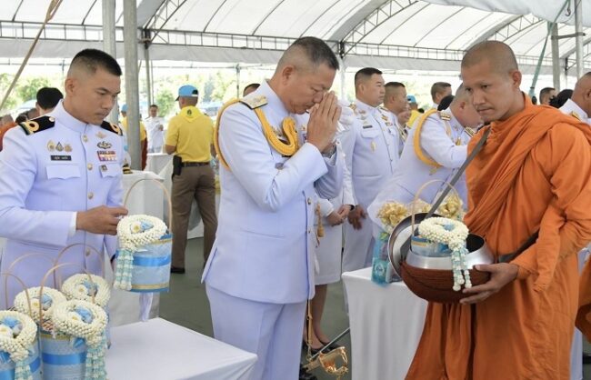 ผู้บัญชาการทหารเรือ ร่วมพิธี ทำบุญตักบาตรถวายพระราชกุศล เนื่องในโอกาสวันเฉลิมพระชนมพรรษา สมเด็จพระนางเจ้าสิริกิติ์ พระบรมราชินีนาถ พระบรมราชชนนีพันปีหลวง ณ มณฑลพิธีท้องสนามหลวง