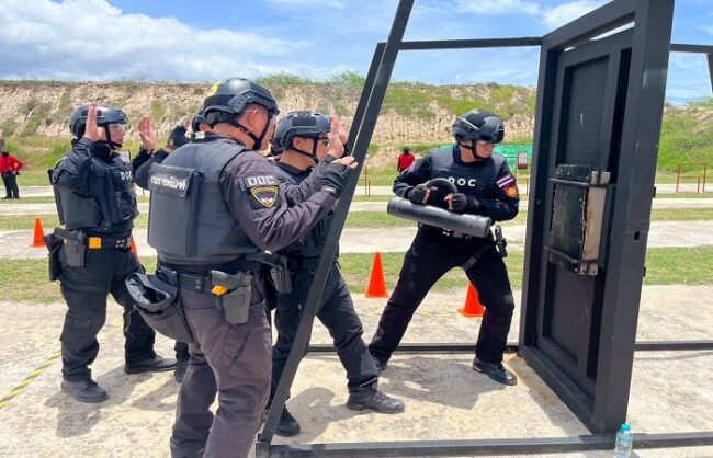 กรมราชทัณฑ์ จัดโครงการพัฒนาศักยภาพเจ้าหน้าที่เรือนจำ/ทัณฑสถาน ในการฝึกและทดสอบแข่งขันความสามารถทางด้านยุทธวิธีชุดปฏิบัติการพิเศษ “THAILAND PRISON LOCKDOWN CHALLENGE (TPLC) 2025” ระหว่างวันที่ 11 – 16 สิงหาคม 2568 เพื่อเสริมสร้างทักษะและพัฒนาศักยภาพของเจ้าหน้าที่ด้านยุทธวิธีต่าง ๆ ที่จำเป็นต่อการปฏิบัติภารกิจ ซึ่งมีตัวแทนทีมปฏิบัติการพิเศษ เรือนจำ/ทัณฑสถาน ทั้ง 10 เขต โดยแบ่งเป็นเจ้าหน้าที่ทีมปฏิบัติการ 7 นาย ผู้ควบคุมทีมระดับผู้อำนวยการ 1 นาย รวม 8 นาย ทำการฝึกและเข้าร่วมทดสอบแข่งขัน พร้อมทั้งได้รับเกียรติจากทีมปฏิบัติการพิเศษ กรมราชทัณฑ์ประเทศสิงคโปร์ ซึ่งเป็นความร่วมมือในการพัฒนาทางด้านยุทธวิธีในงานราชทัณฑ์ระหว่างประเทศ โดยมีผู้เข้าร่วมทั้งหมดกว่า 120 นาย