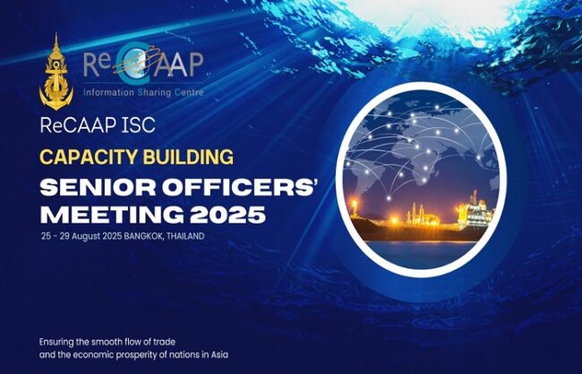 การประชุม ReCAAP ISC Capacity Building Senior Officers’ Meeting (CBSOM) 2025 มีกำหนดจัดขึ้นระหว่าง วันที่ 25 – 29 สิงหาคม 2568 ณ โรงแรมมิลเลนเนียม ฮิลตัน กรุงเทพ โดยมีกองทัพเรือเป็นเจ้าภาพร่วมกับศูนย์ ReCAAP ISC มีประเทศสมาชิก ReCAAP ISC เข้าร่วม จำนวน 15 ประเทศ หน่วยงานด้านความมั่นคงทางทะเล สถาบันการศึกษา และบริษัทขนส่งทางทะเลของประเทศไทยเข้าร่วมการประชุม โดยการประชุมในครั้งนี้เป็นการประชุมระดับอาวุโสเพื่อเพิ่มขีดความสามารถในการต่อต้านการกระทำอันเป็นโจรสลัดและการปล้นเรือด้วยอาวุธในเอเชีย รวมทั้ง อาชญากรรมทางทะเลที่เกี่ยวข้อง ซึ่งการประชุมในครั้งนี้จะเน้นการใช้มาตรการด้านความมั่นคงทางทะเลที่สนับสนุนในกิจกรรมเศรษฐกิจสีน้ำเงิน (Blue Economy) ผ่านการใช้เทคโนโลยีสมัยใหม่ รวมทั้งการสร้างความร่วมมือกับหน่วยงานด้านความมั่นคง และ บริษัทเดินเรือในภูมิภาค